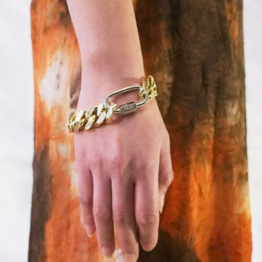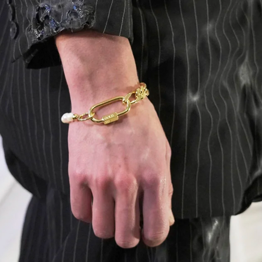 Bracelet - thin/bold figaro / pearls 1 - gold.