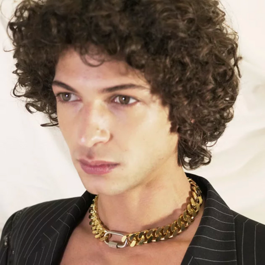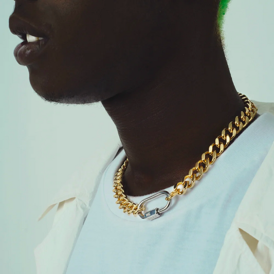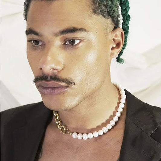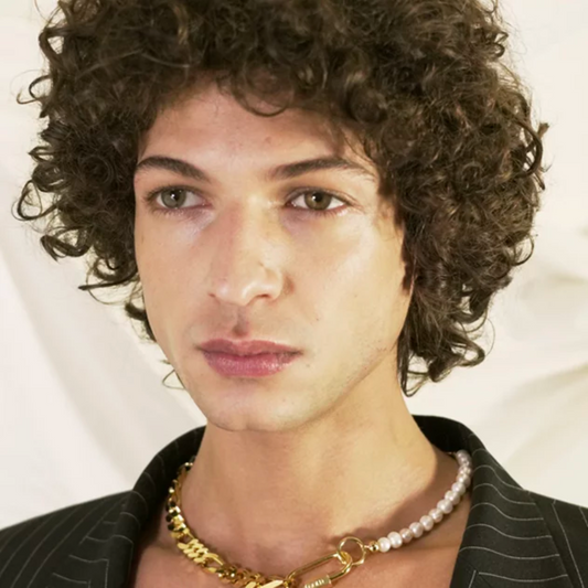 Necklace - thin/bold figaro / pearls 1 - gold.
